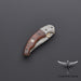 The smooth Rose Wood handle feels natural when held in the hand. The one hand operation thumb pin adds to the functionality of the knife. The folder has a brass liner lock that locks the blade at a high tolerance to make sure there is no play.