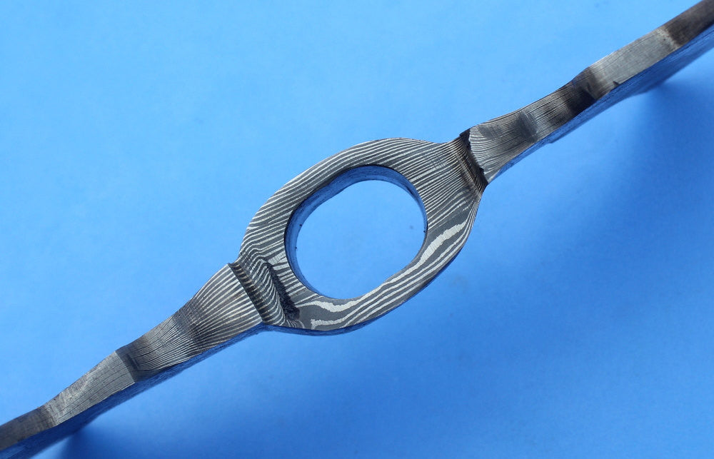 Damascus steel hand forged with combinations of 1095 High Carbon Steel and 15n20 forming over 1000+ layers. We oil quench and temper to a hardness of 57-58 Rockwell C. Some of the many Damascus steel advantages include the following: Blade edge resistance from the harder steel, micro serrations from the alternating layers, ductility from the 15N20.