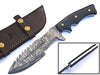 Impressive workmanship that will turn heads. Comes with a custom sheath that fits the tracker with a snug grip. Sheep skin hand formed to fit this functional art piece to perfection. Damascus hand forged with combinations of 1095 High Carbon and 4340 High Tensile Steel forming over 900+ layers. We oil quench and temper to a hardness of 57-58 Rockwell C.