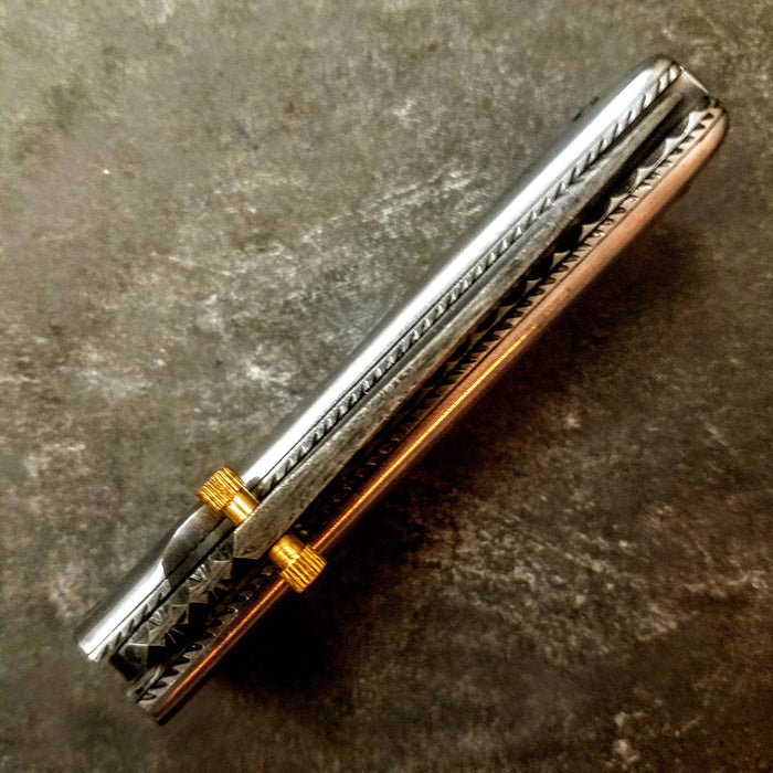 The smooth handle feels natural when held in the hand. The one hand operation thumb pin adds to the functionality of the knife. The folder has a brass liner lock that locks the blade at a high tolerance to make sure there is no play.