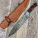 Hometown Knives Damascus Chef Knife is handcrafted and forged to perform. The Rain Drop Damascus steel is hand forged with combinations of 1095 High Carbon Steel and 4340HT forming over 250+ layers. We oil quench and deferentially temper the edge of the blade to a hardness of 60+ Rockwell C. Some of the many Damascus steel advantages include the following: Blade edge resistance from the harder steel, micro serrations from the alternating layers, ductility from the 4340HT.